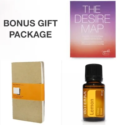 The Desire Map Book to help you uncover your deepest desires, a Do Terra Lemon Essential Oil to support your body's natural ability to heal + a 3-Pack of Moleskine Journals to provide a space where you can document your journey, dig into your values, and put your dreams down on paper where they can continue to inspire you each and every day!!